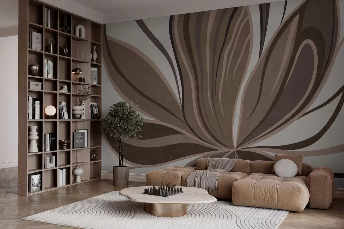 Тапете за зид Стилизовани цвет са течним линијама у смеђим тоновима бр. w05147
