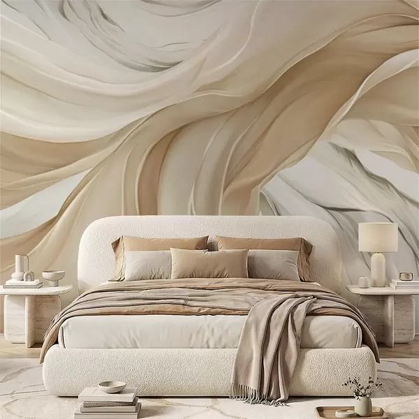 Тапете за зид Таласи од лепршаве беж тканине бр. w05152