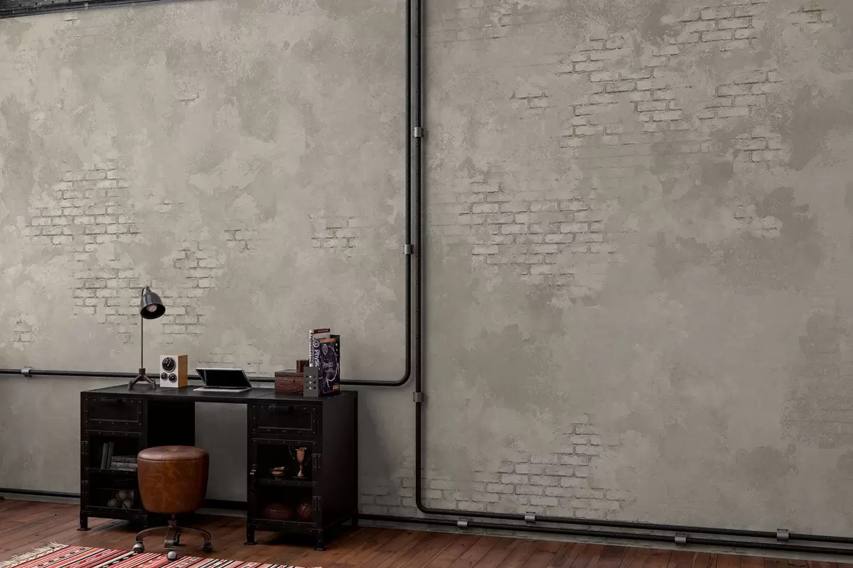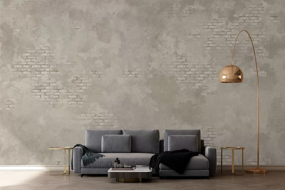 Тапете за зид Гранџ светли малтер са видљивим цигланим мрљама бр. w05161v1
