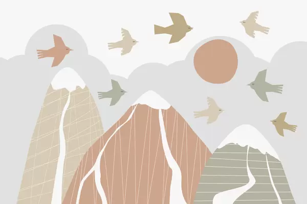 Тапете за зид Скандинавске планине и птице бр. w05166