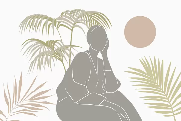 Тапете за зид Силуета жене и палмино лишће бр. w05190