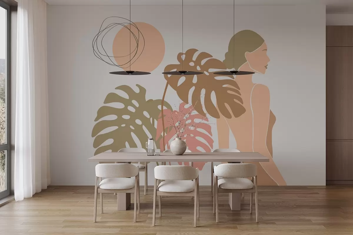 Тапете за зид Силуета жене близу тропског лишћа бр. w05192v1
