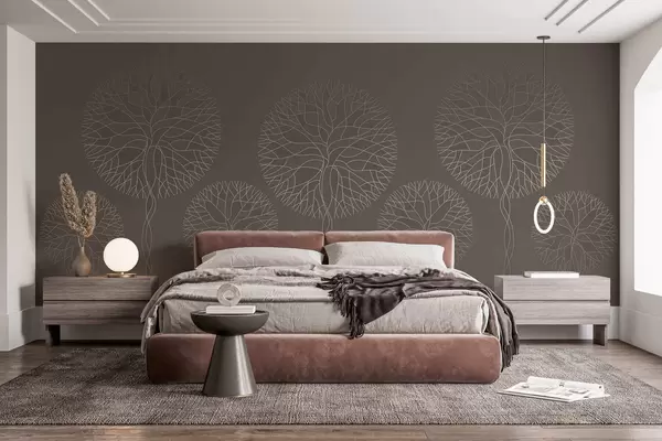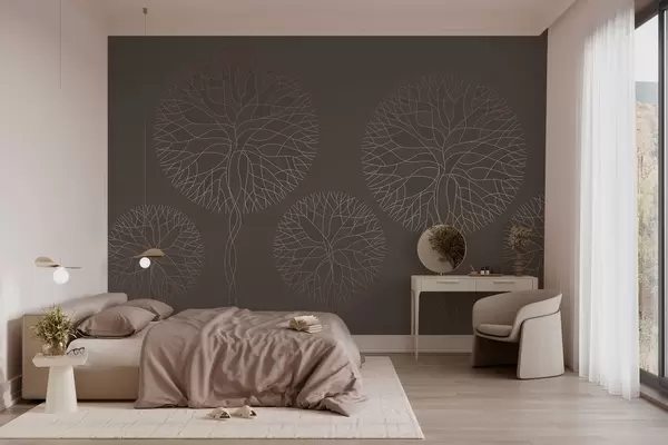 Тапете за зид Фантазијско линеарно дрвеће са бујним крунама у елегантним мока тоновима бр. w05213v1