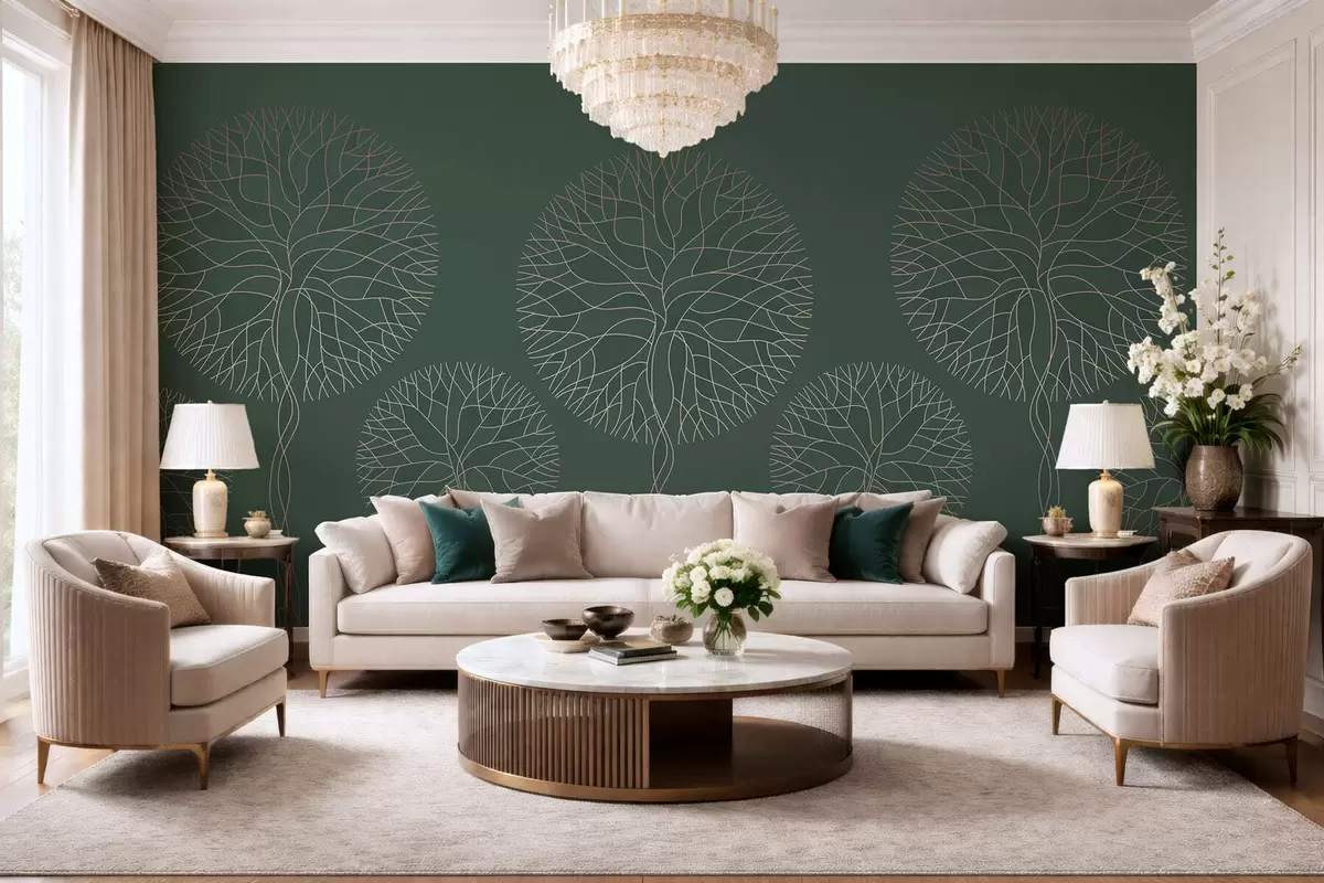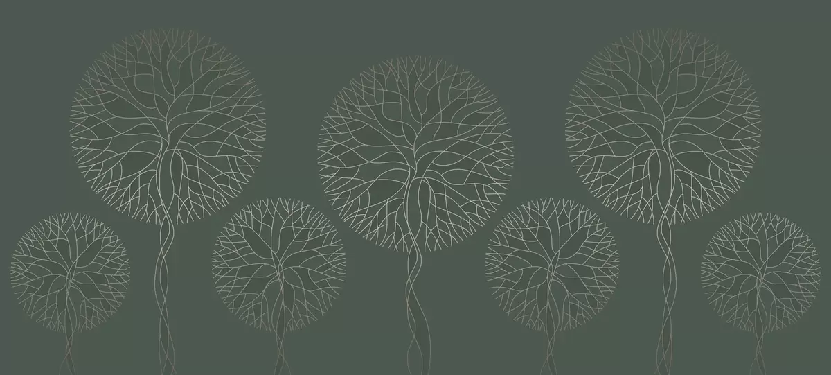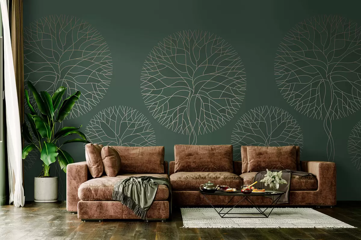 Тапете за зид Фантазијско линеарно дрвеће са бујним крунама у елегантним тамнозеленим тоновима бр. w05213v2