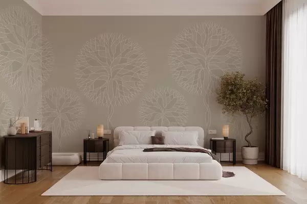 Тапете за зид Фантазијско линеарно дрвеће са бујним крунама у беж тоновима бр. w05213v3