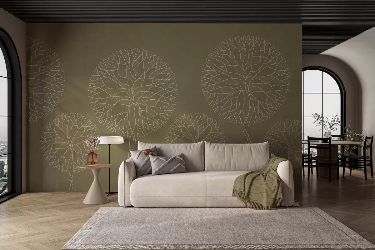 Тапете за зид Фантазијско линеарно дрвеће са бујним крунама у каки тоновима бр. w05213v7