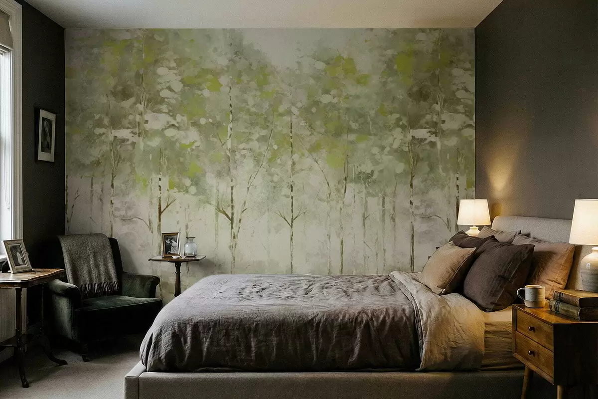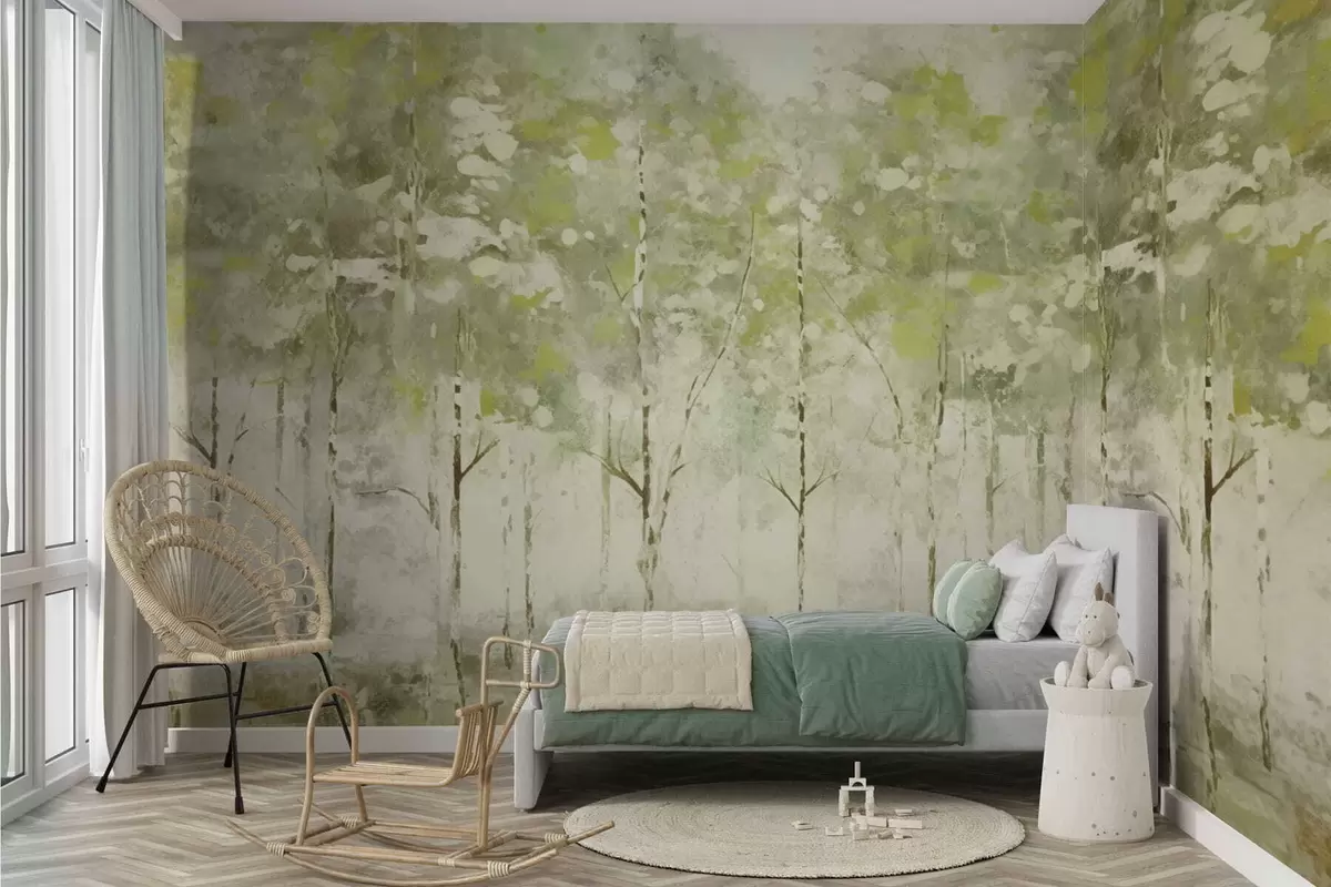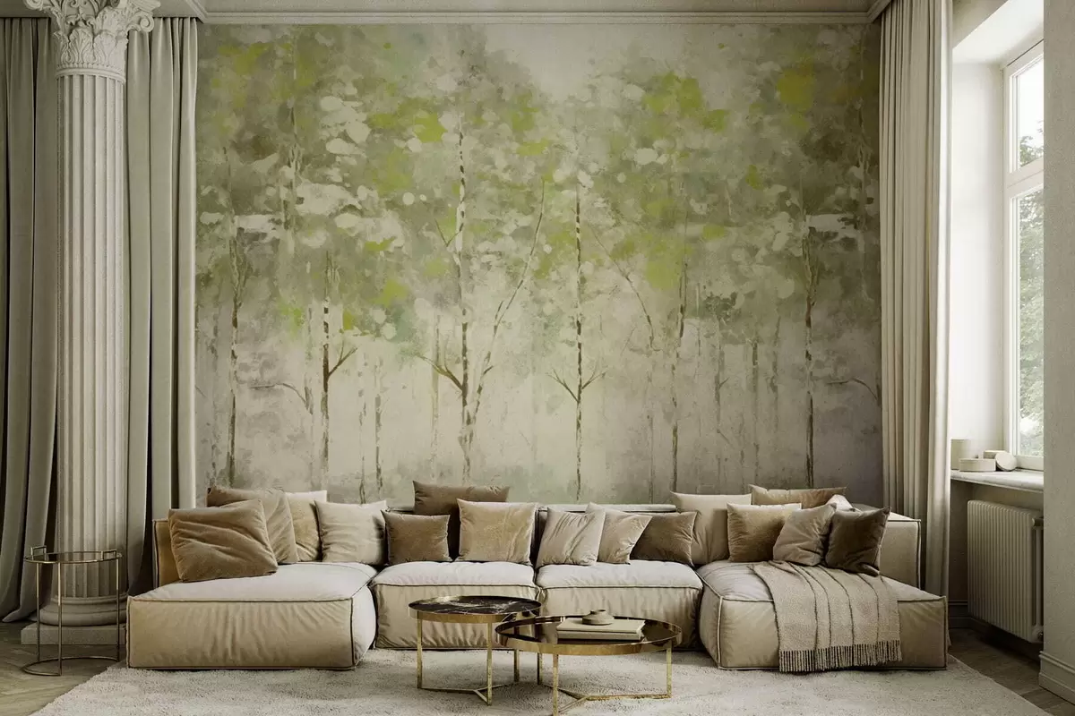 Тапете за зид Стилизована шума са витким дрвећем у зеленим тоновима бр. w05221v1
