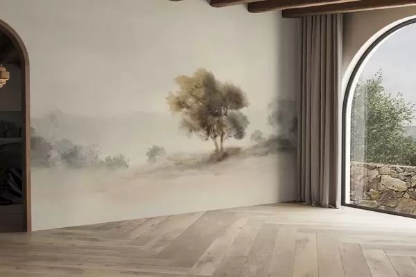 Тапете за зид Минималистички пејзаж са усамљеним дрветом у магли бр. w05223