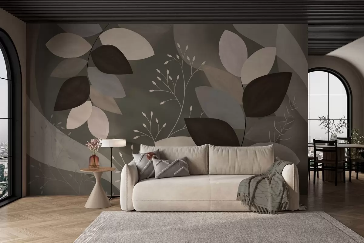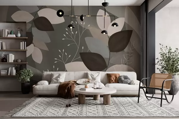 Тапете за зид лишће и трава у тамним нијансама бр. w05237v1