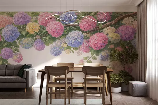 Тапете за зид Осликане хортензије висе бр. w05250