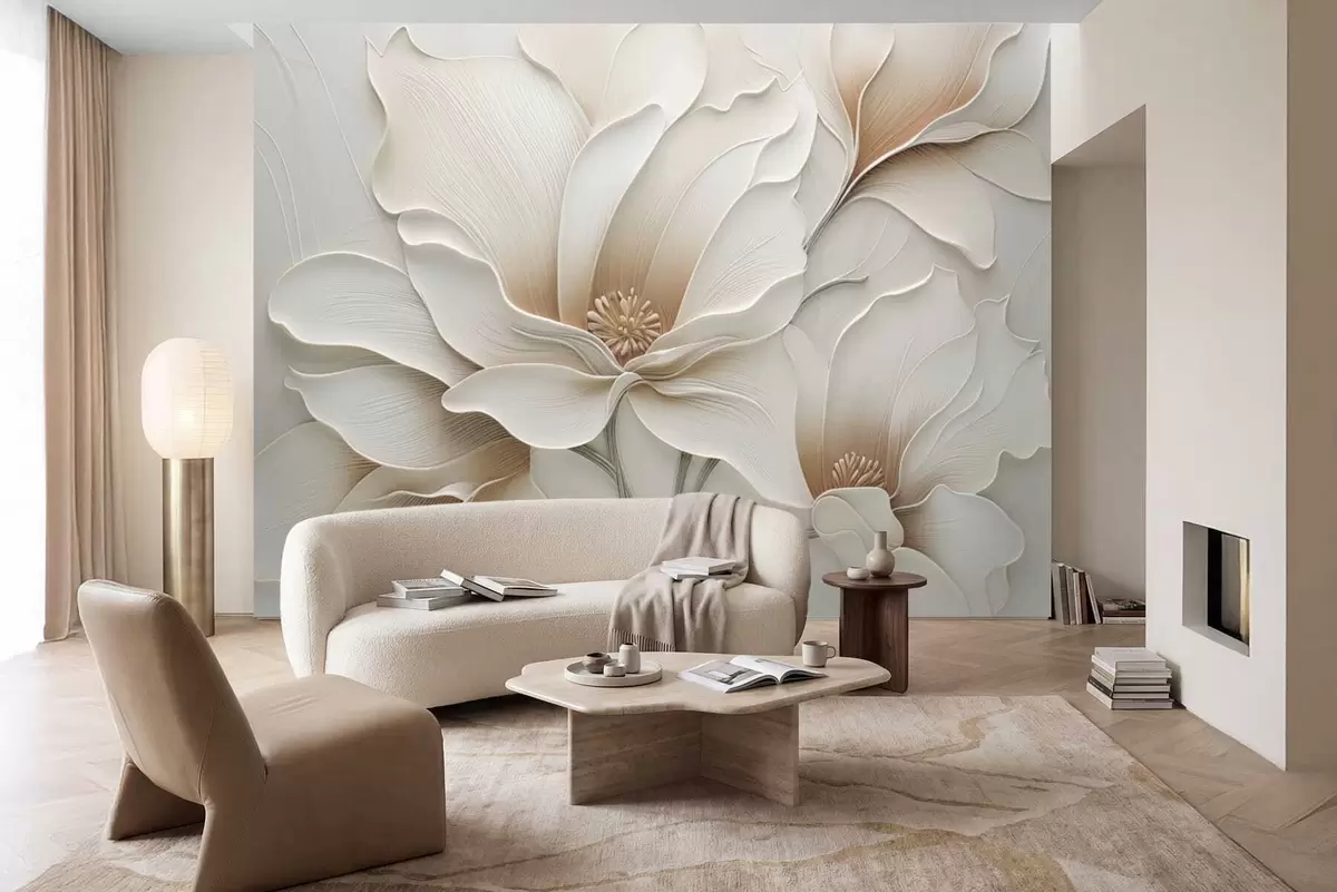 Тапете за зид Крупни план рељефног беж цветног рељефа бр. w05269