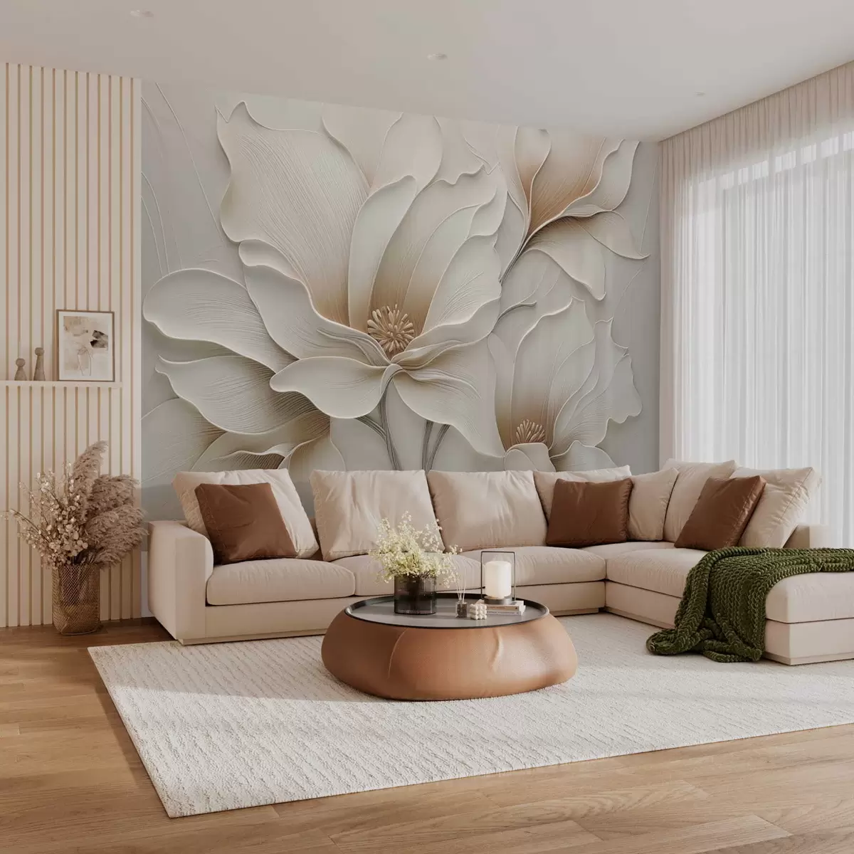 Тапете за зид Крупни план рељефног беж цветног рељефа бр. w05269