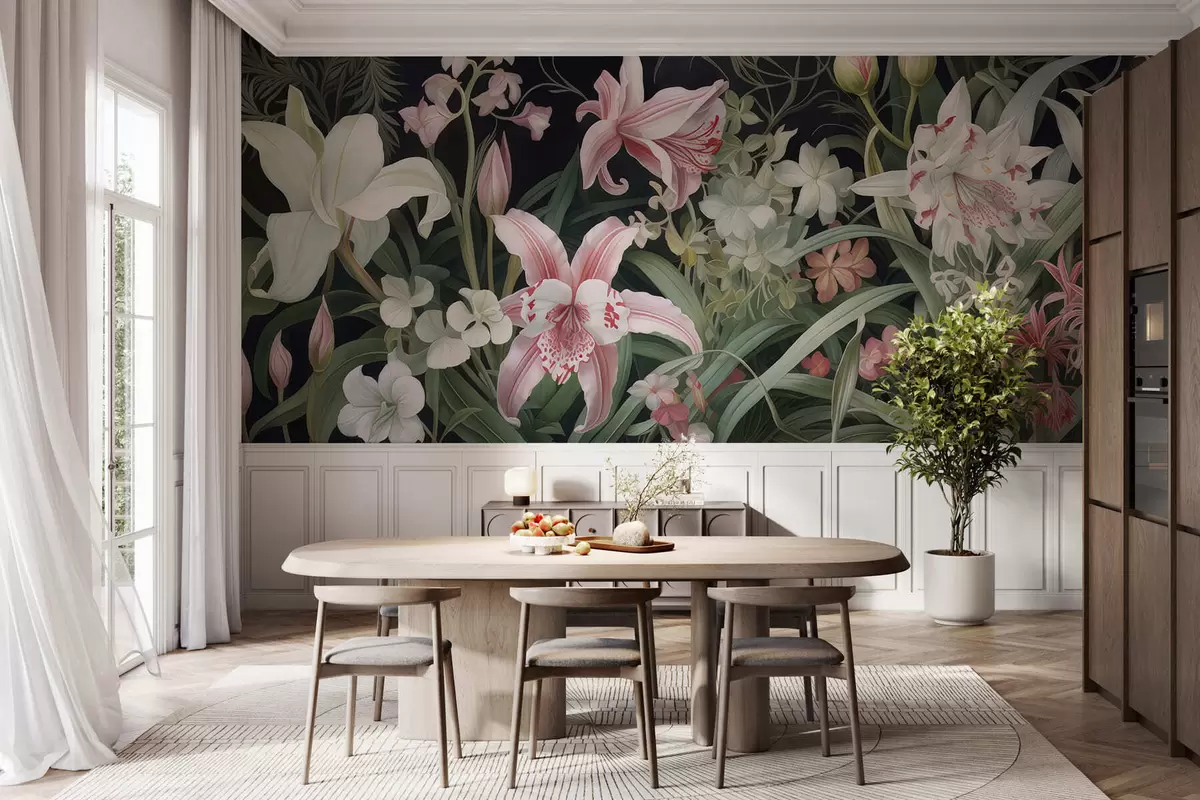 Тапете за зид Фантастично цвеће на тамној позадини бр. w05278