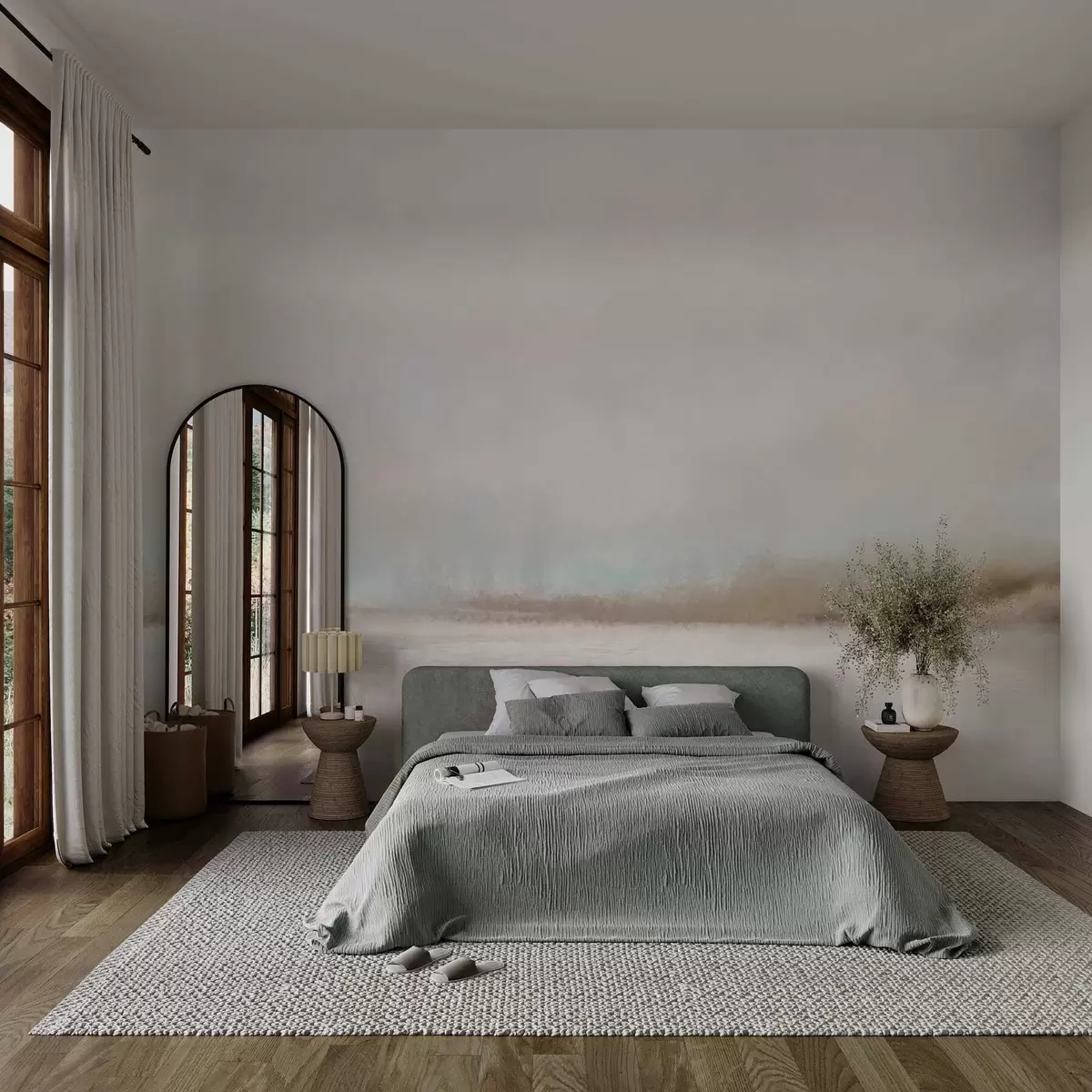 Тапете за зид Магловити пејзаж са језером и шумом бр. w05319