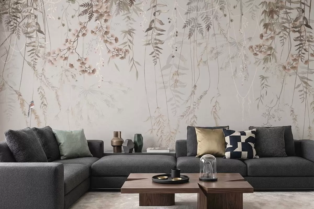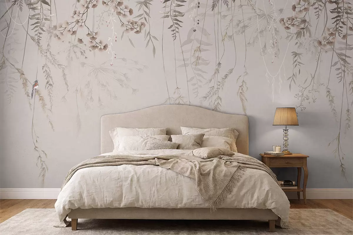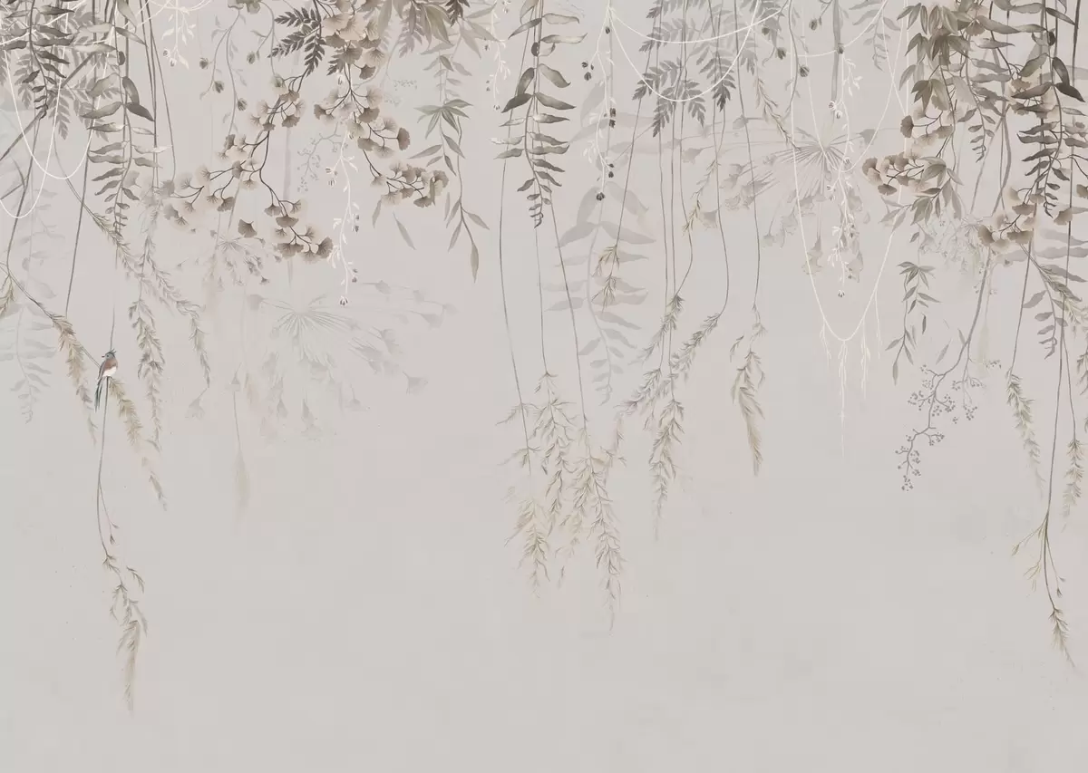 Тапете за зид Нежне висеће траве на светлој позадини бр. w05320v2