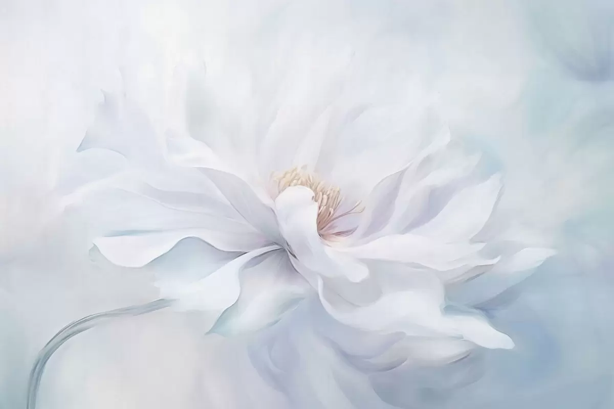 Тапете за зид Нежни бели цвет са лепршавим латицама на плавој позадини бр. w05354