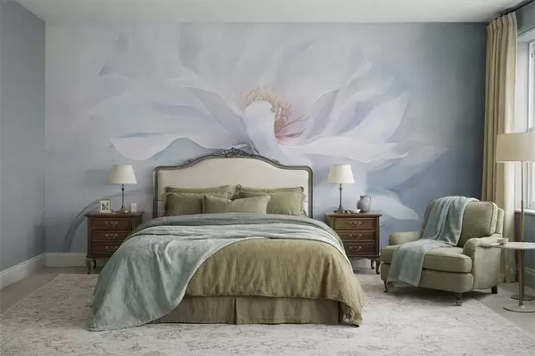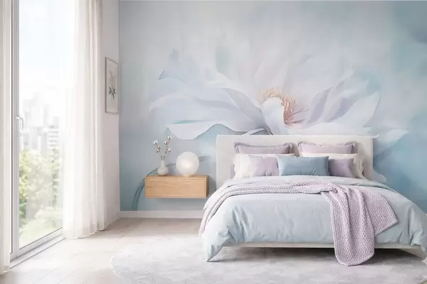 Тапете за зид Нежни бели цвет са лепршавим латицама на плавој позадини бр. w05354
