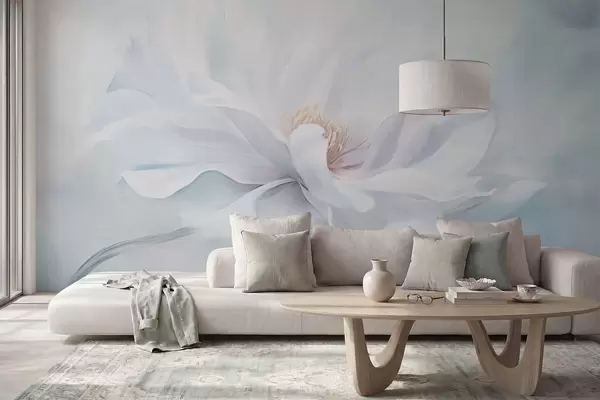 Тапете за зид Нежни бели цвет са лепршавим латицама на плавој позадини бр. w05354