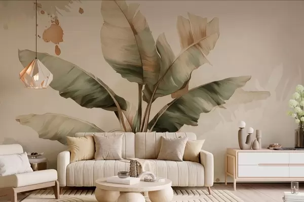 Тапете за зид велики, сликовити грозд листова банане са ретро-прскавицама бр. w05384