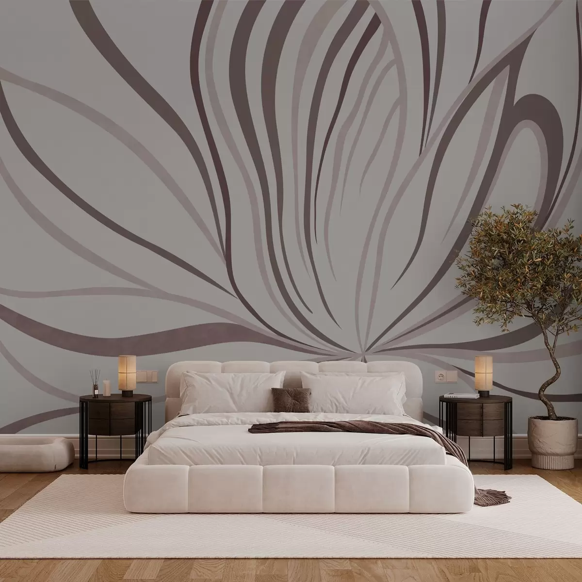 Тапете за зид Стилизовани цвет са меким линијама у ружичасто-беж тоновима бр. w05392v1