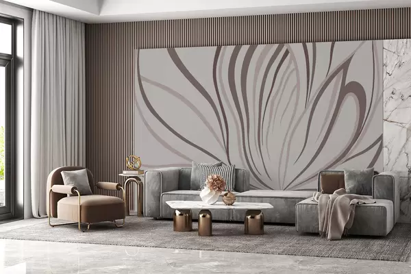 Тапете за зид Стилизовани цвет са меким линијама у ружичасто-беж тоновима бр. w05392v1