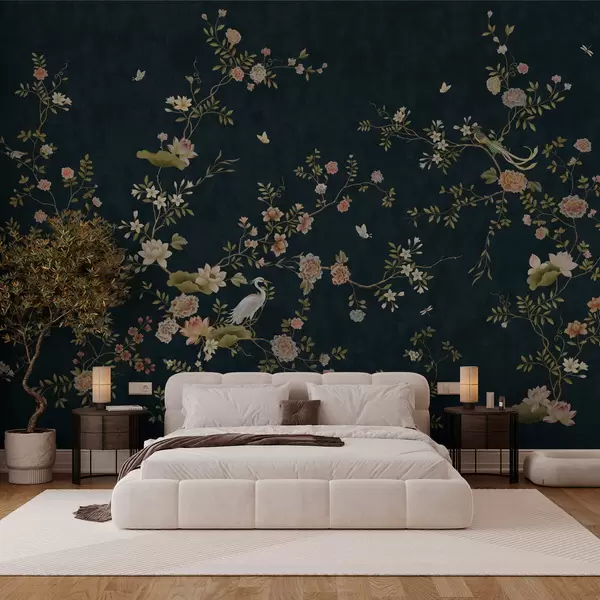 Тапете за зид Цветне гране са птицама на тамној позадини бр. w05416v3