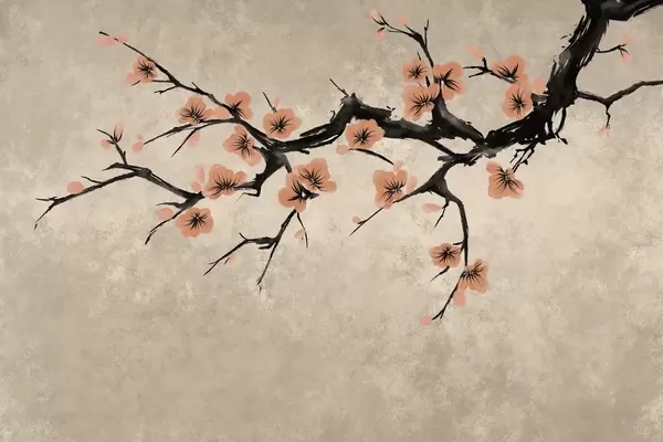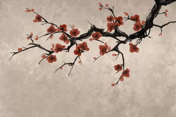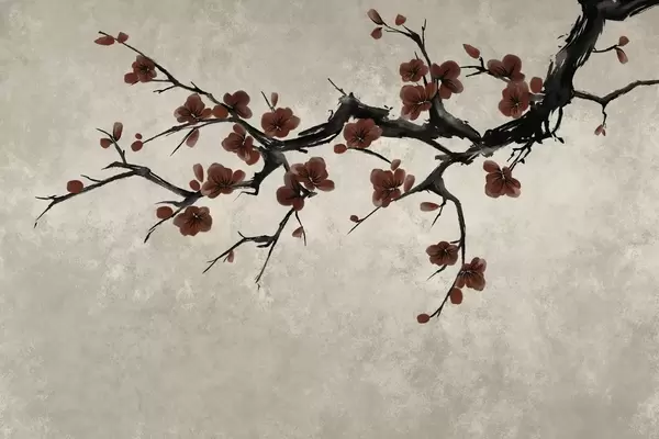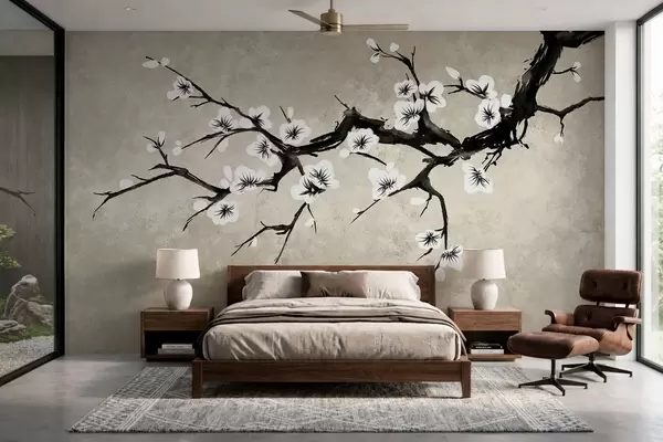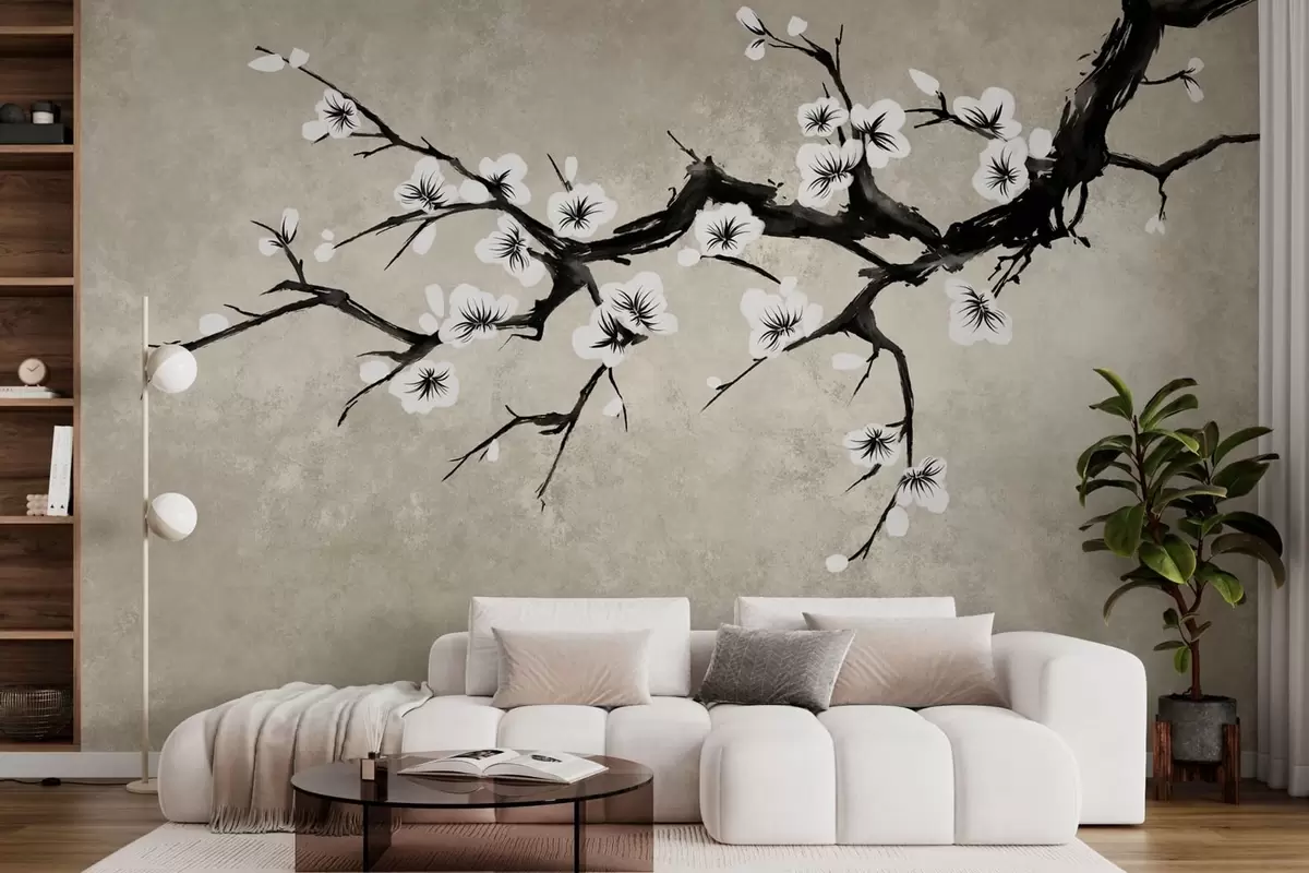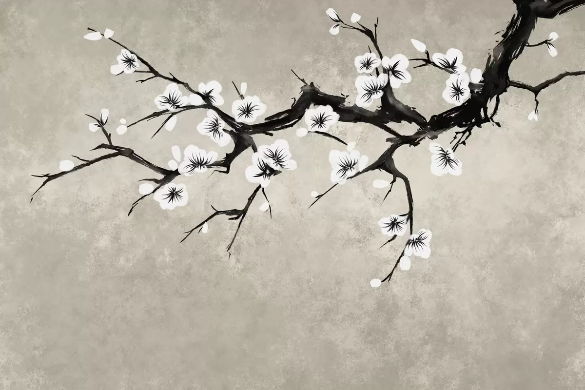 Тапете за зид Грана са белим цветовима у минималистичком стилу бр. w05425