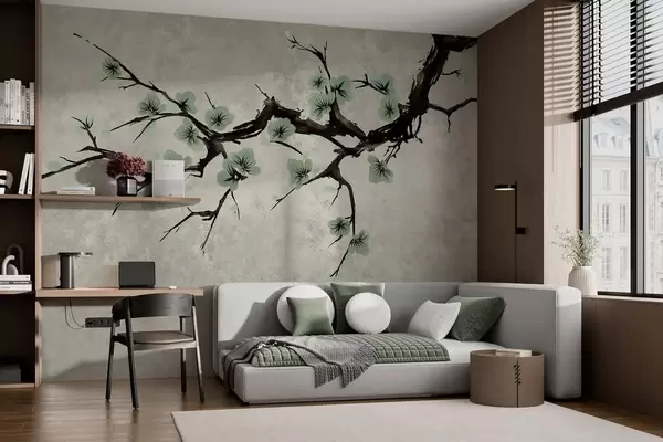 Тапете за зид Грана са зеленим цветовима у мирним тоновима бр. w05425v2