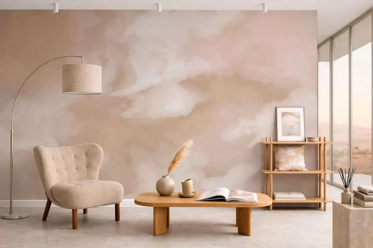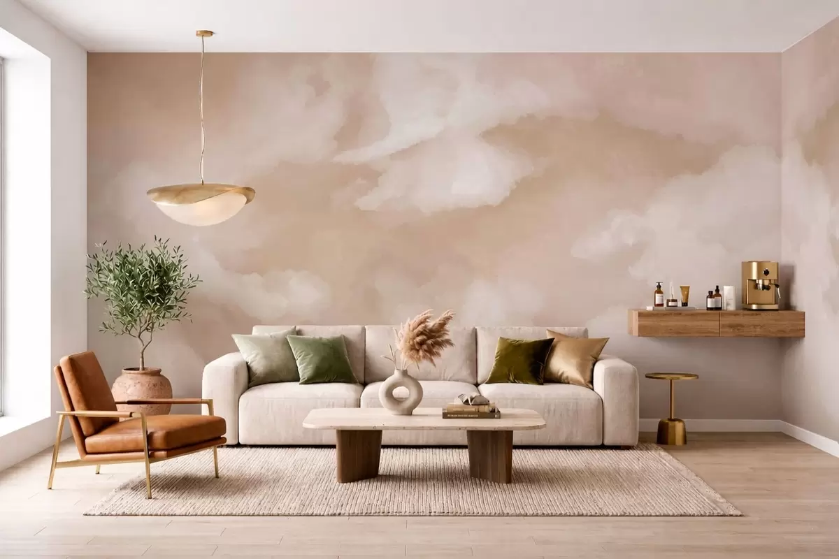 Тапете за зид Мекана облачна позадина у топлим беж тоновима бр. w05426