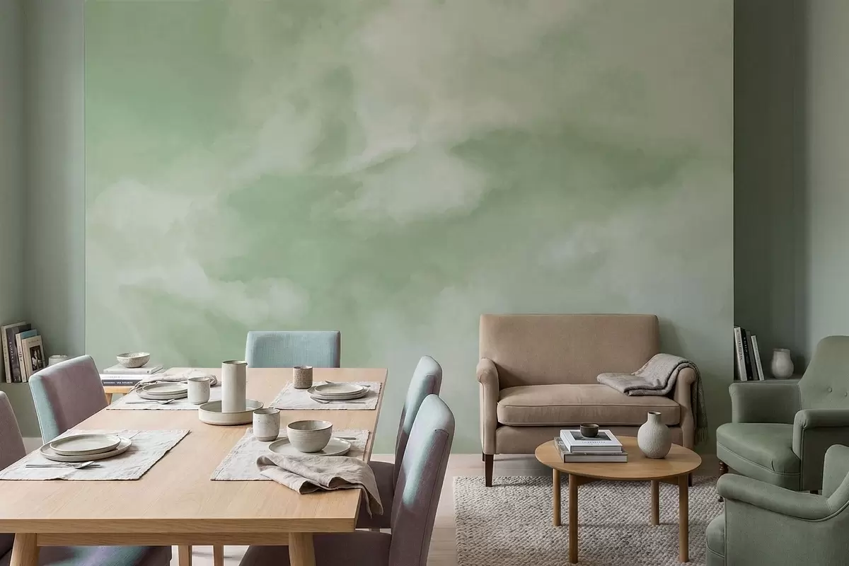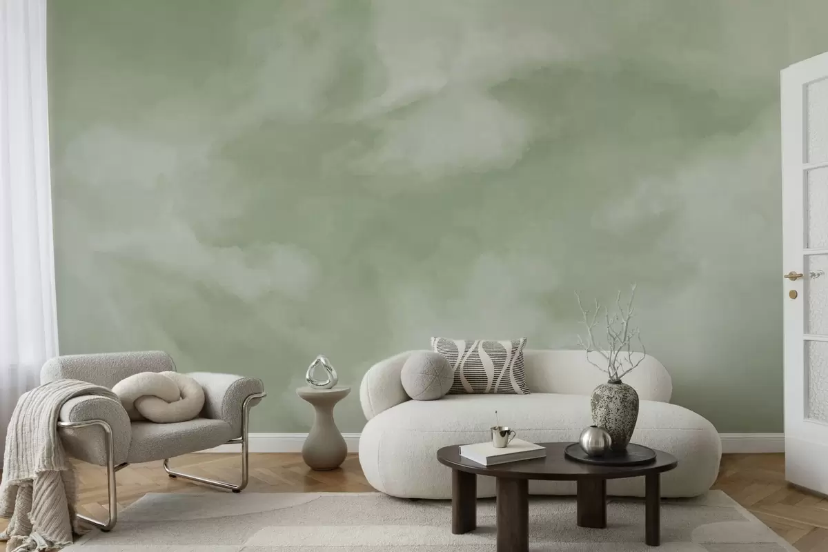 Тапете за зид Мекана облачна позадина у меким зеленим тоновима бр. w05426v2