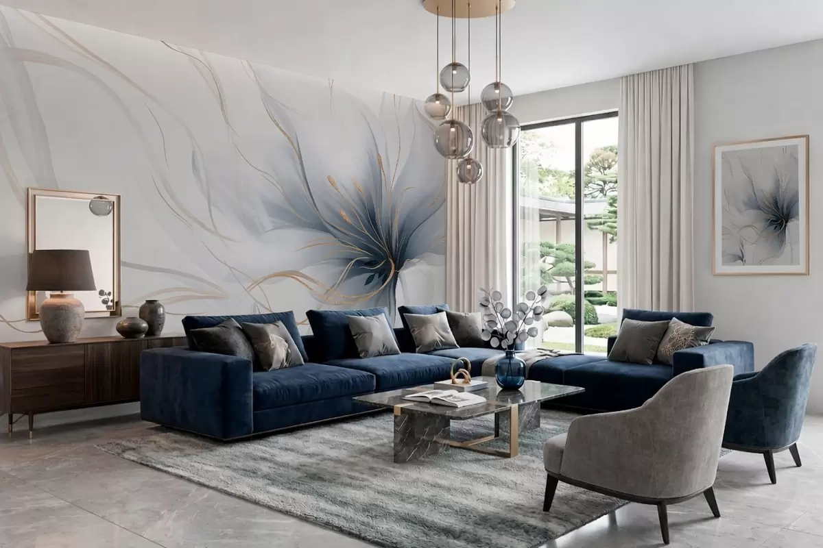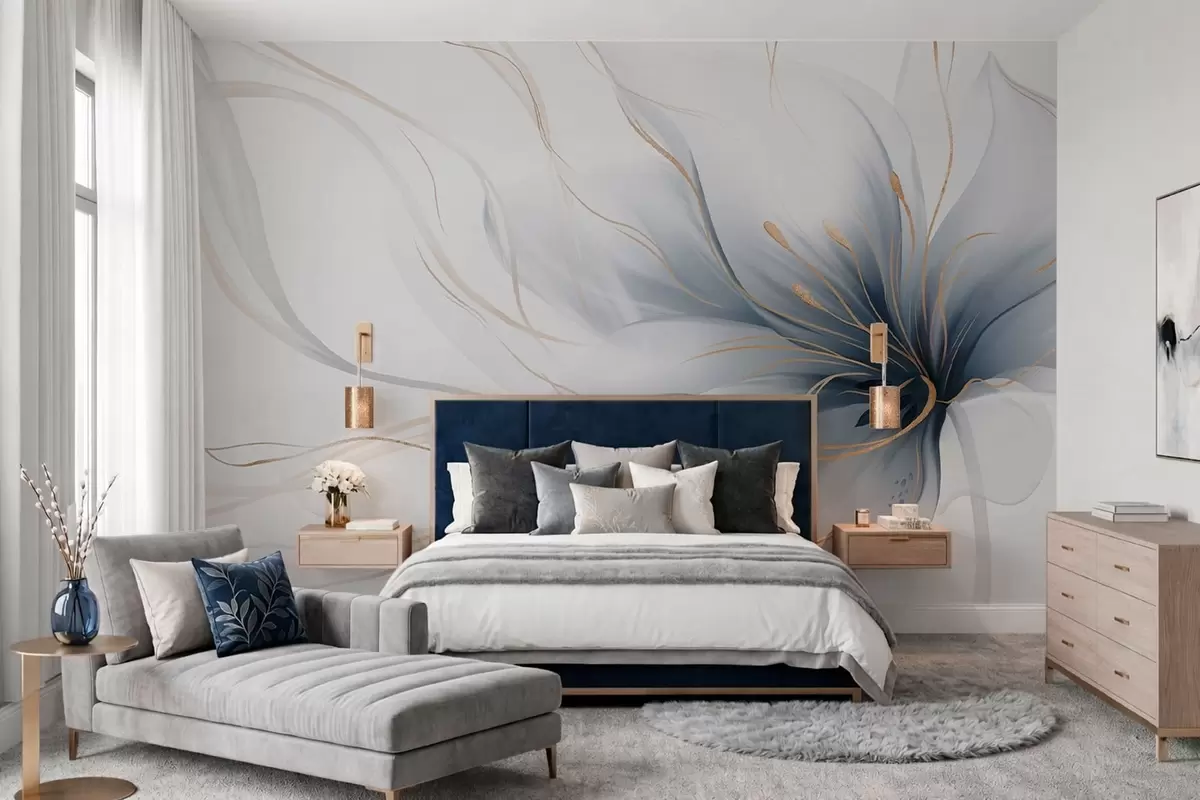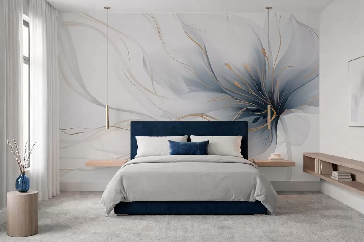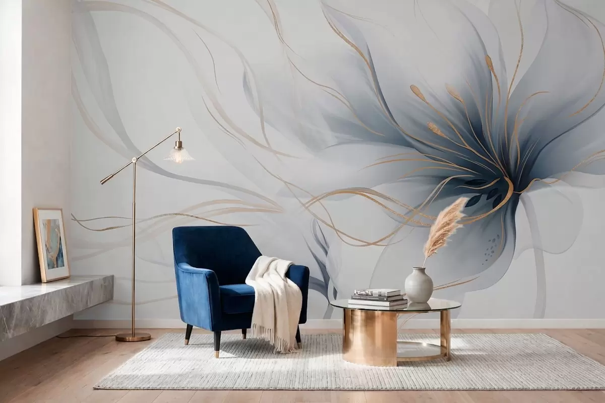 Тапете за зид Апстрактни плави цвет са течним линијама у стилу флуидне уметности бр. w05428