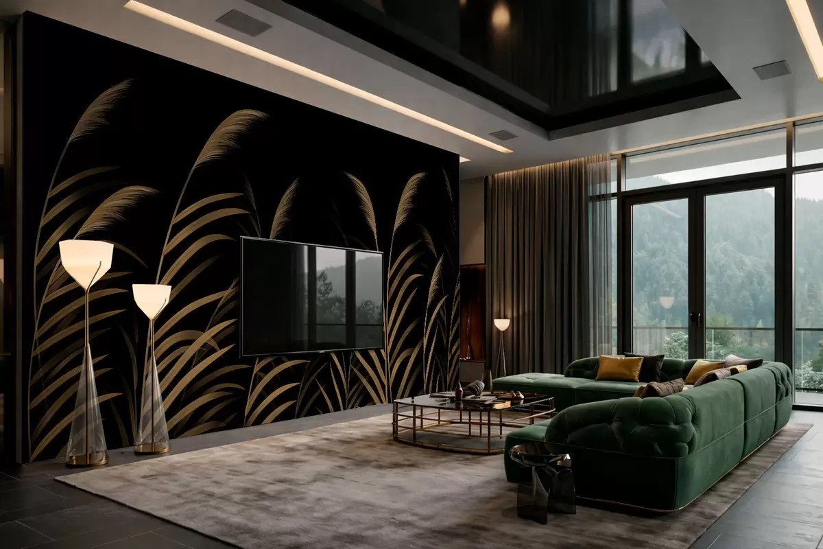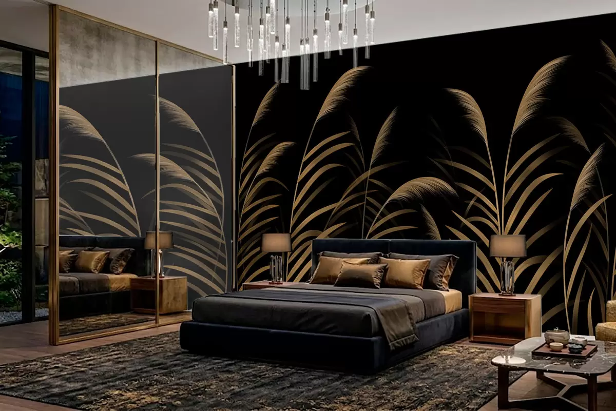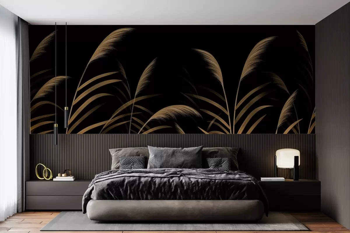 Тапете за зид Минималистичке траве на тамној позадини са високим контрастом бр. w05432v3