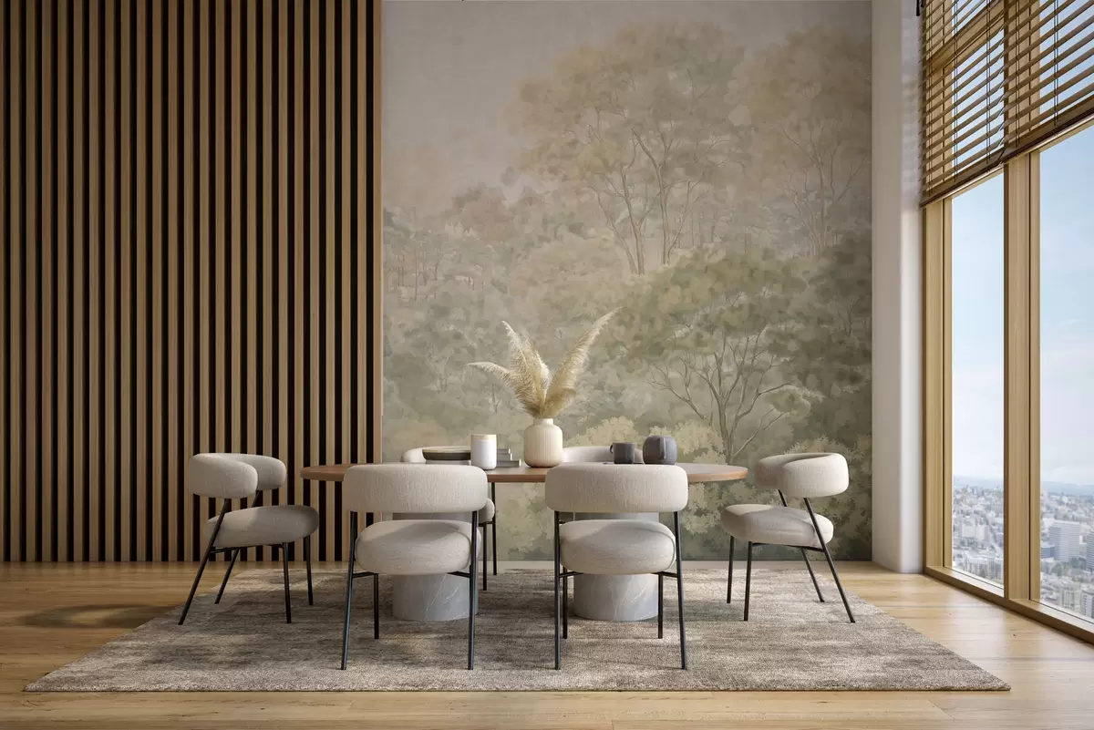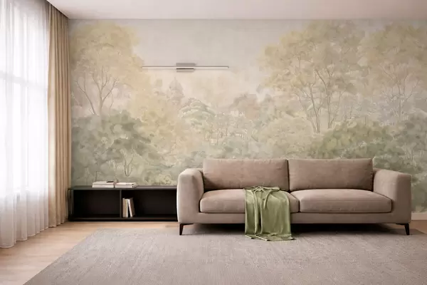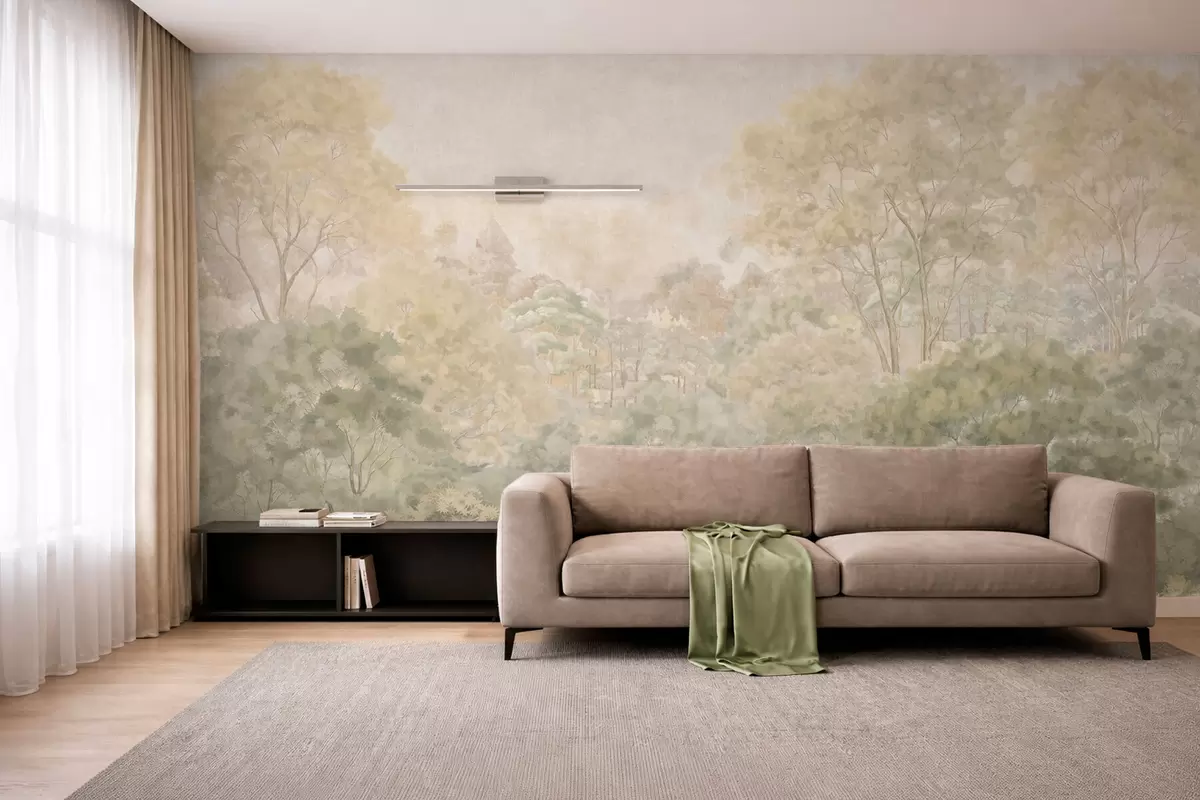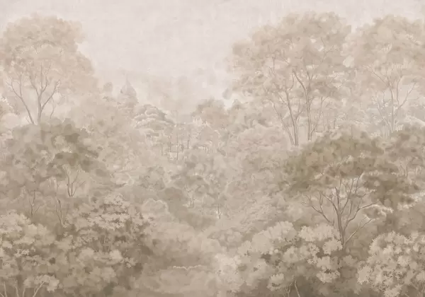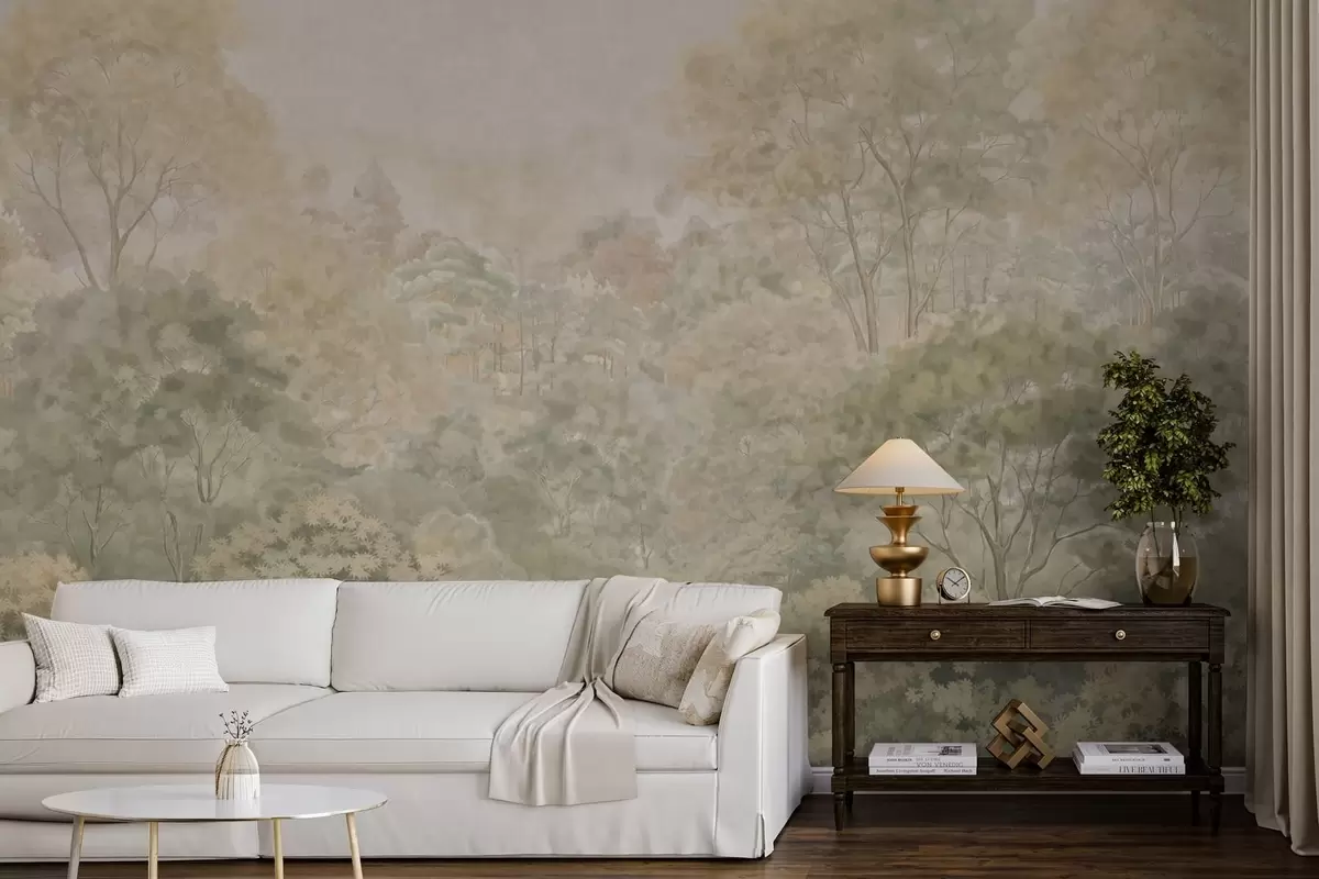 Тапете за зид Винтажни шумски пејзаж у пригушеним зеленим тоновима бр. w05433