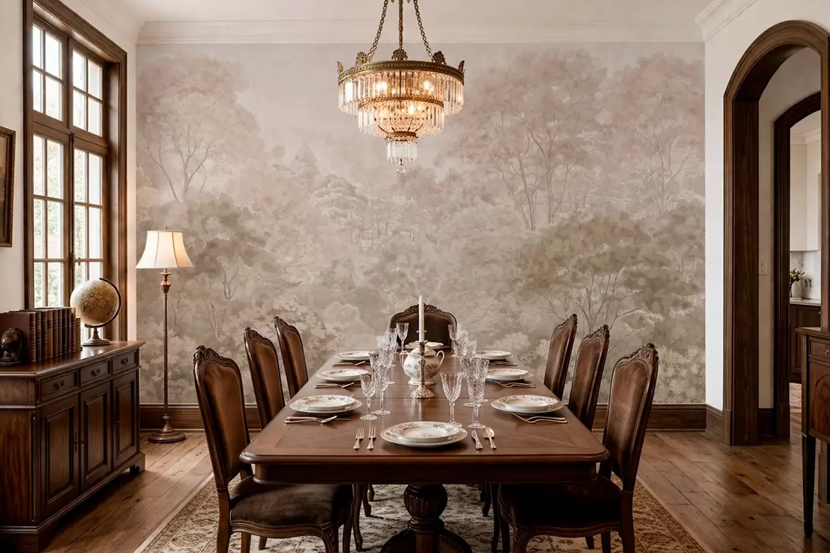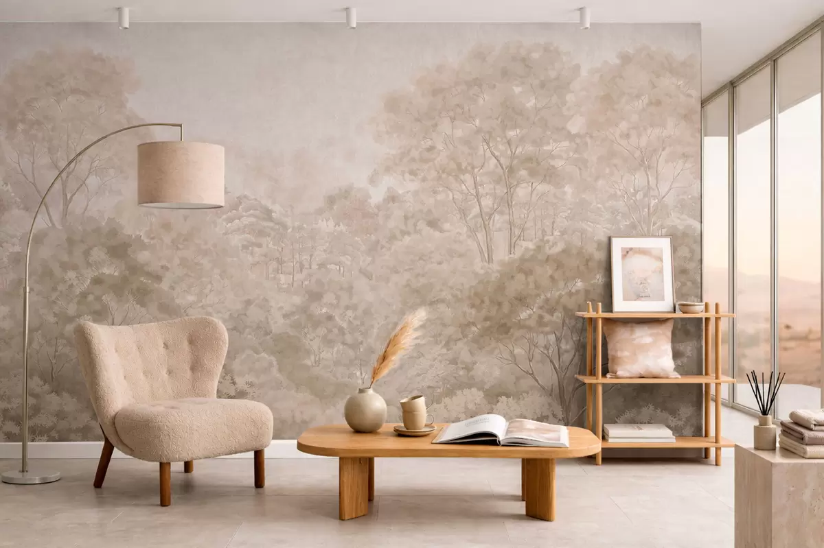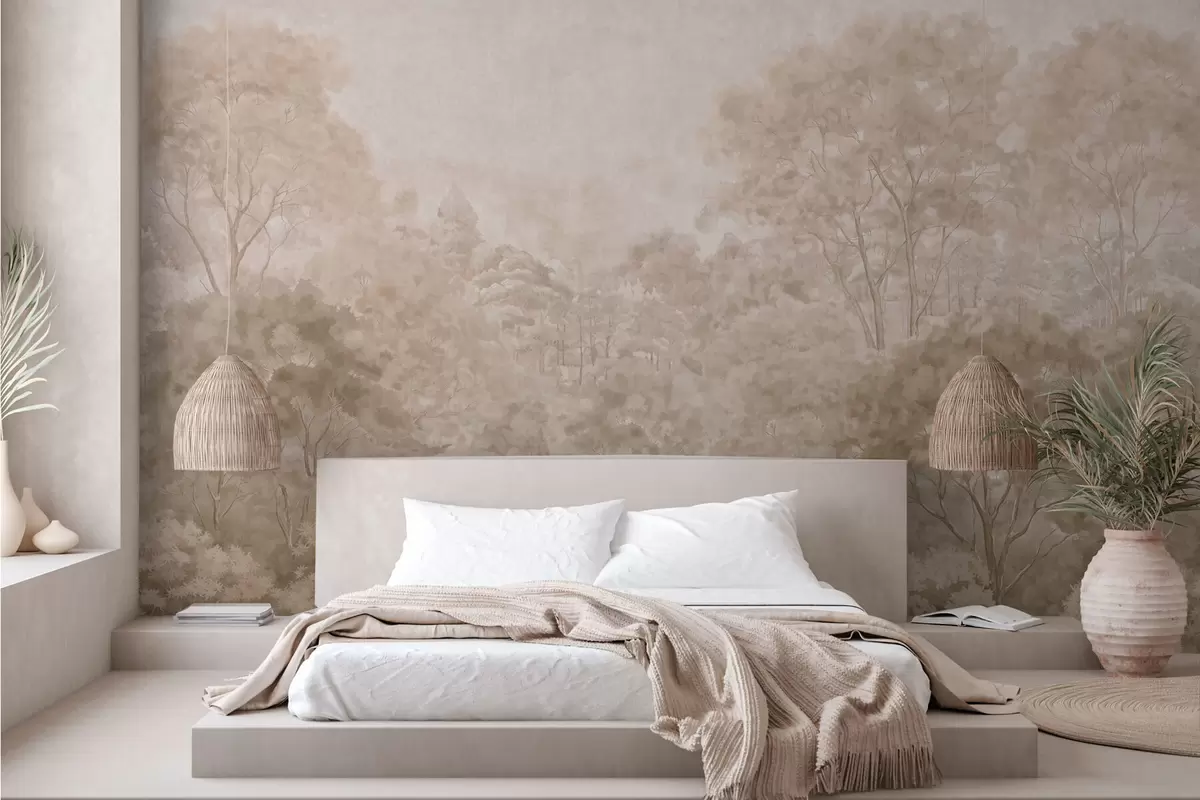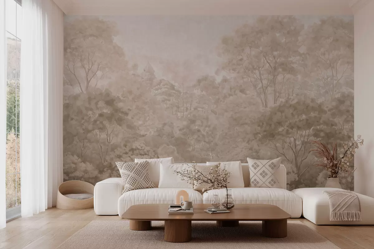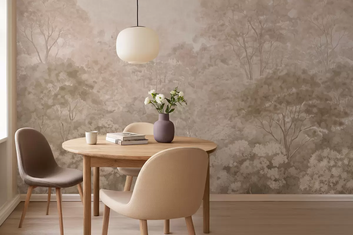Тапете за зид Винтажни шумски пејзаж у топлим беж тоновима бр. w05433v1