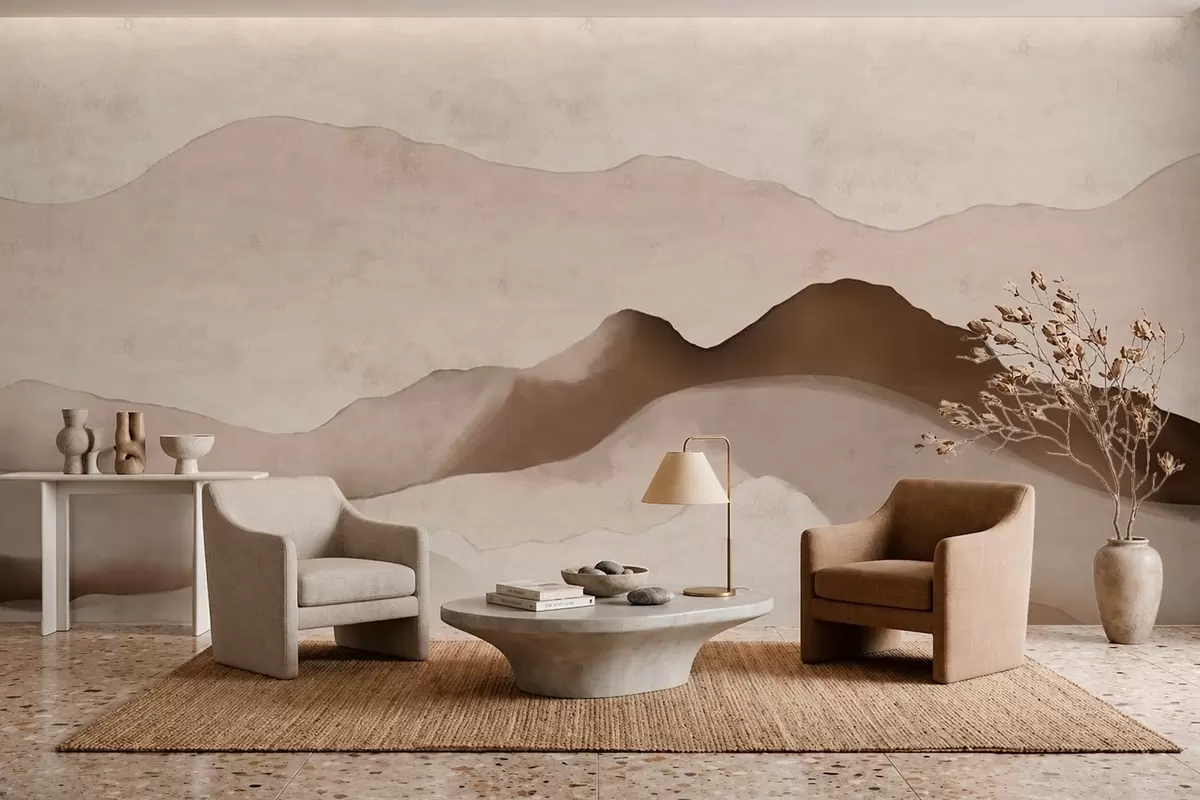 Тапете за зид Апстрактне планине у јапанском и минималистичким стиловима бр. w05434