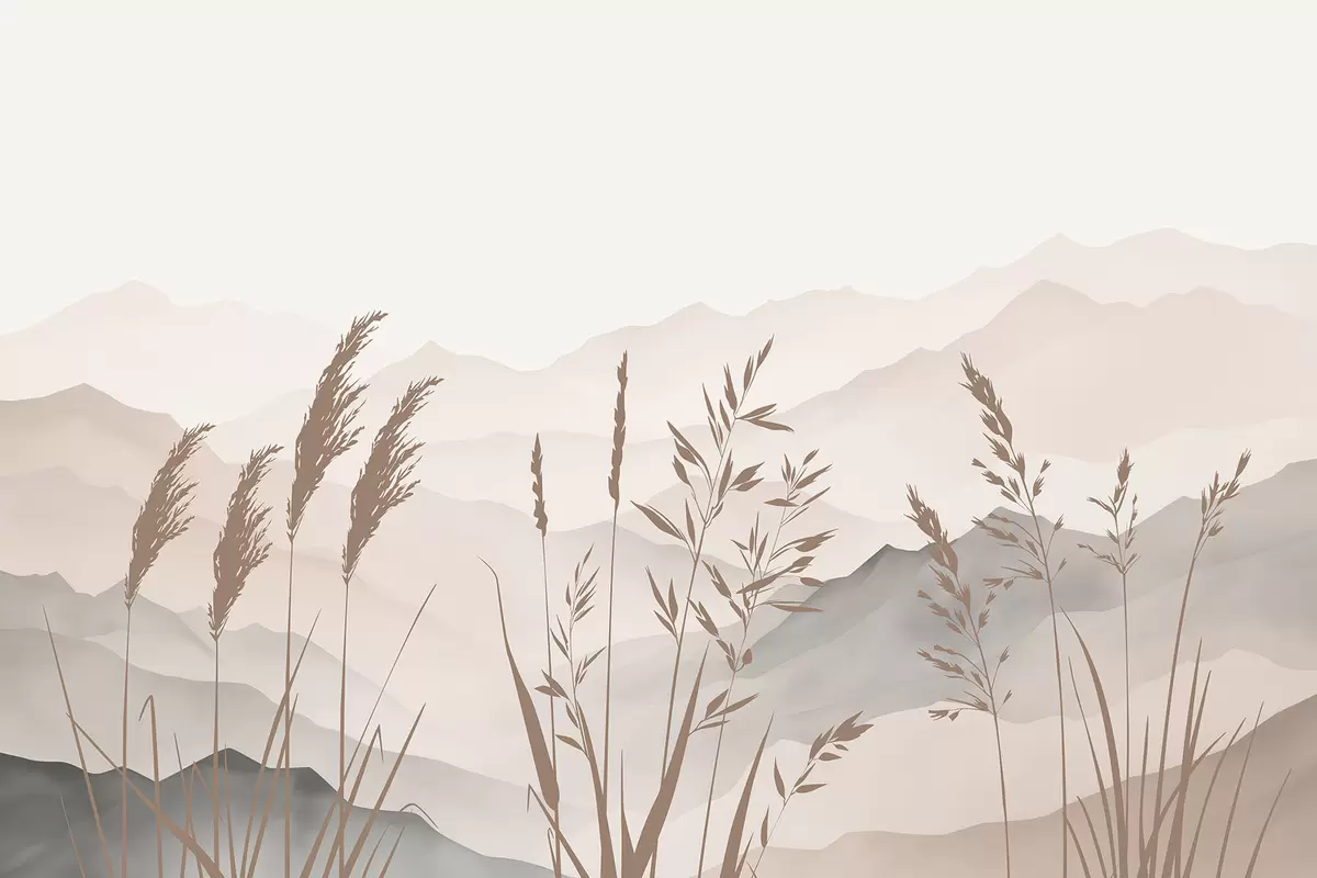 Тапете за зид Силуете траве на позадини планина бр. w05501v1