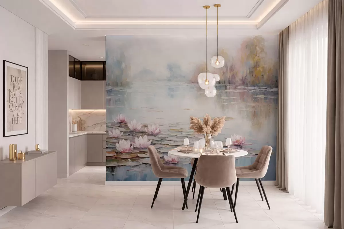 Тапете за зид Импресионистичко језеро са локвањима и меким светлом бр. w05515