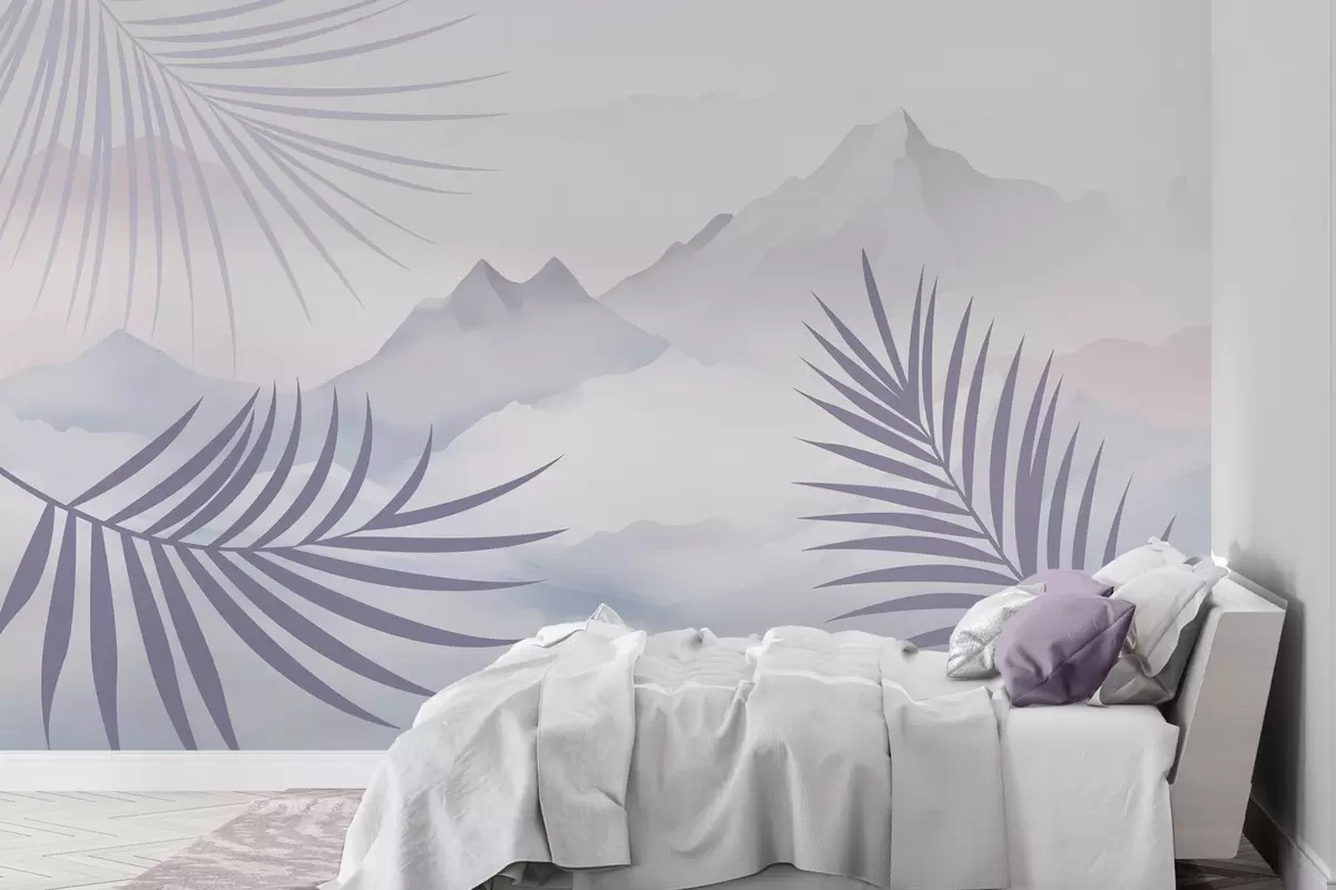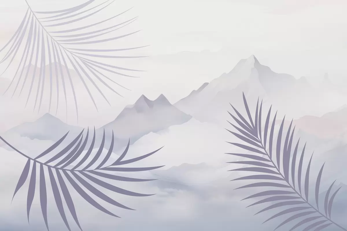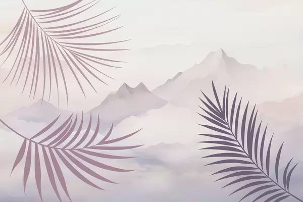Тапете за зид Палмино лишће на позадини планина бр. w05548