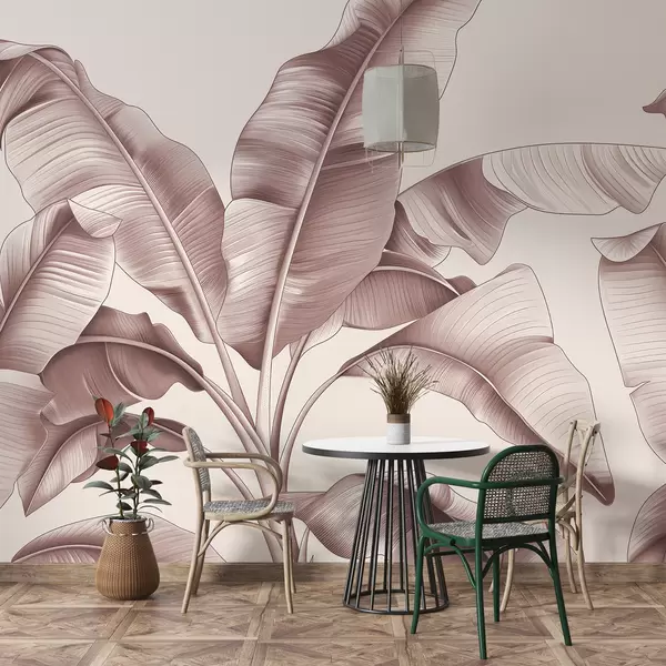 Тапете за зид нацртани велики листови банане пастелно розе бр. w07877v1