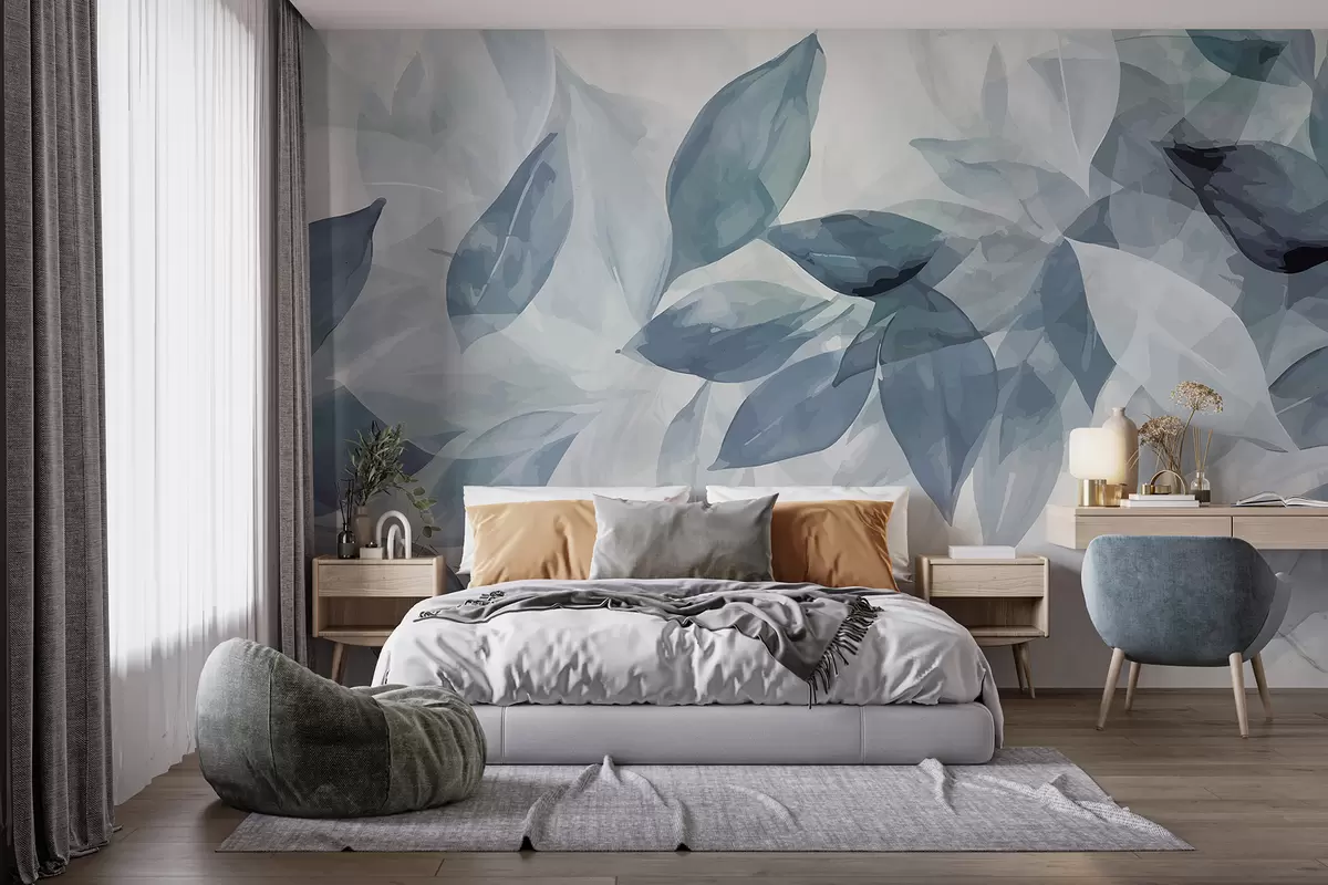 Тапете за зид Меки сиви и бели листови акварела са замућеном, етеричном позадином бр. w07981