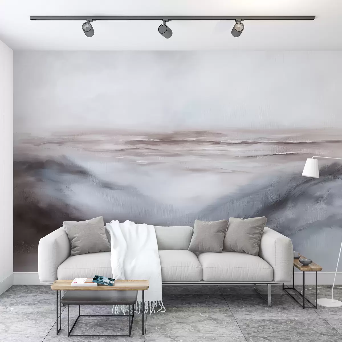 Тапете за зид Апстрактни пејзаж у пастелним бојама, потези четкице, плажа, море, палета сиве боје бр. w08141