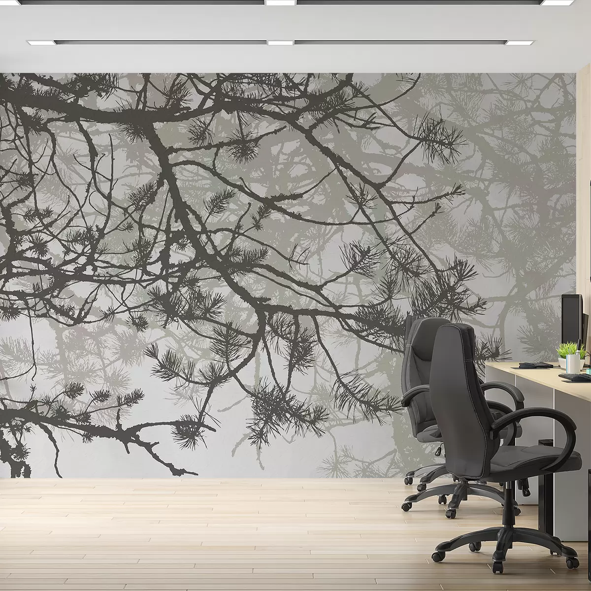 Тапете за зид гране великог дрвета у сивим тоновима бр. w08166