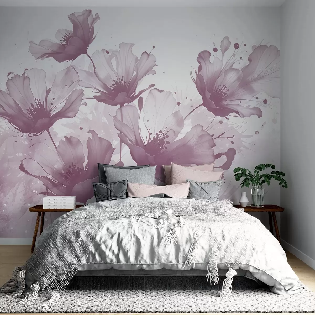 Тапете за зид Нежно ружичасто цвеће са меким, замућеним латицама и прскањем акварела на светлој позадини бр. w08376v2