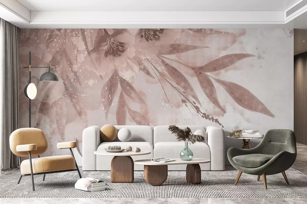 Тапете за зид Деликатни ружичасти прскање са апстрактним цветним елементима са меком, замућеном позадином бр. w08417