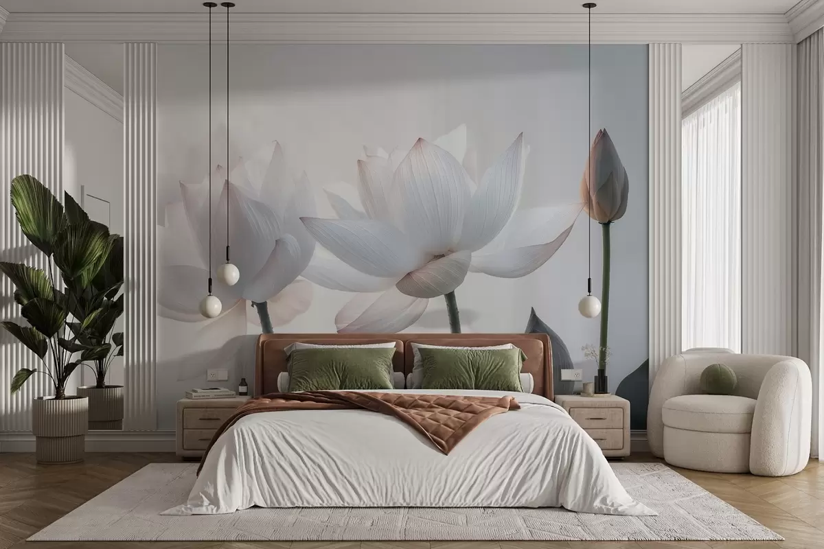 Тапете за зид Нежни лотосови цветови са латицама и листовима бр. w08488