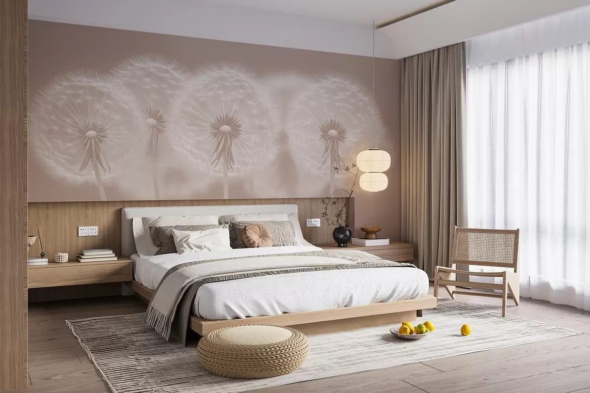 Тапете за зид Деликатни ружичасти прозрачни маслачак на розе природној позадини бр. w08498v1