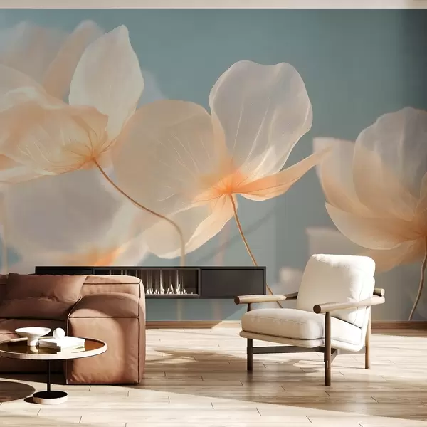 Тапете за зид Латице лотоса, деликатна композиција са плавом позадином бр. w08500