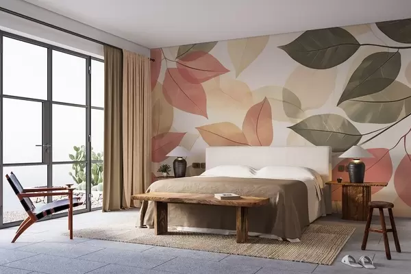 Тапете за зид Гране листова у црвеним и зеленим тоновима бр. w08502