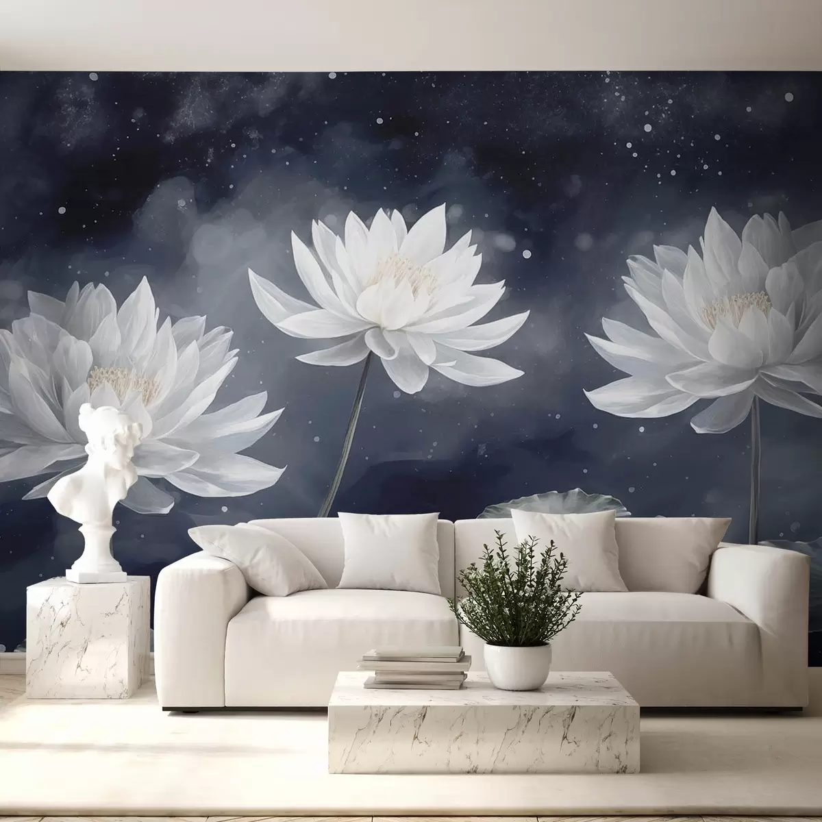 Тапете за зид Три цвета лотоса на тамној позадини бр. w08506