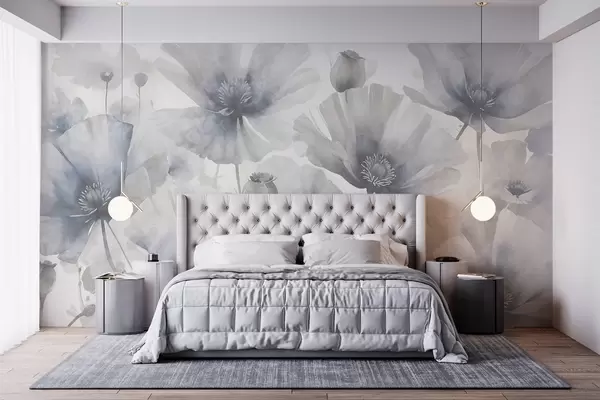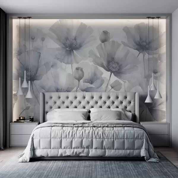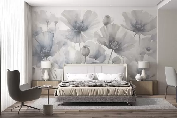Тапете за зид Деликатне текстурне грунге сиво и бело цвеће са меким, замућеним латицама на белој позадини бр. w08526
